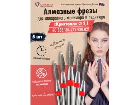 Кристалл, Алмазная фреза (пламя острое, каплевидное) D2,1, L080, мягкая, 856.104.242.080.021, 5 шт 102903334688