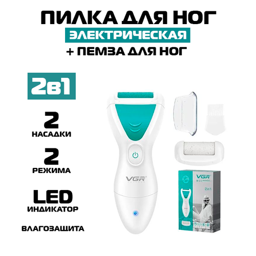 Электрическая роликовая пилка VGR V - 812 с 2 насадками для удаления сухой и огрубевшей кожи на ступнях, для педикюра, красоты и ухода за телом. Благодаря 2 уровням скорости, мягкой и грубой насадкам, педикюрная электропилка эффективно работает на сухой и влажной коже. Меняйте скорость вращения насадок, чтобы добиться идеально гладкой кожи на пятках, локтях, удалить мозоли, обеспечить салонный уход за кожей в домашних условиях. Компактная педикюрная электрическая пемза удобна как дома, так и на отдыхе. Пластиковый корпус надежно защищает электропилку от попадания воды, влаги. Используйте роликовую пилку-пемзу для ног в сауне, бане, ванне. Профессиональный, салонный уход в домашних условиях.