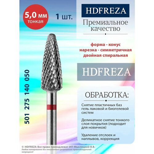 НАЙТИ ВЫГОДНЕЕ - Фреза для маникюра и педикюра HDFREZA твердосплавная для снятия покрытия 501 275 140 050 Тонкая красная конус