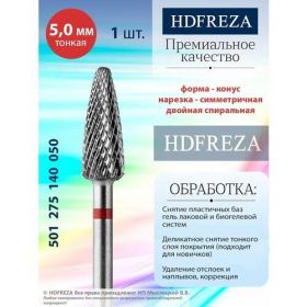 Насадка сделана из качественных материалов, обладает долговечностью, отличной режущей способностью, оптимальным соотношением по цене - качеству, в работе идентична казанским фрезам. Фреза имеет стандартный прямой наконечник диаметром 2,35 мм и подходит почти к любому маникюрному аппарату (машинке, маникюрному фрезеру, аппарату для ногтей). Перед отправкой каждая маникюрная насадка проходит проверку, поэтому мы уверены в ее качестве. Подходит для маникюра и педикюра, домашнего и профессионального использования. Фреза для маникюрного аппарата быстро и легко дезинфицируется и стерилизуется. В разделе бренда HDFREZA вы найдете фрезы для создания идеального набора.