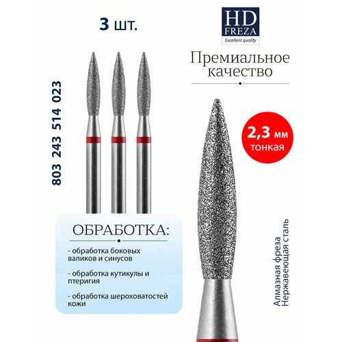 НАЙТИ ВЫГОДНЕЕ - Фреза для маникюра и педикюра алмазная HDFREZA для кутикулы 803 243 514 023 Тонкая пламя (упаковка 3 шт)