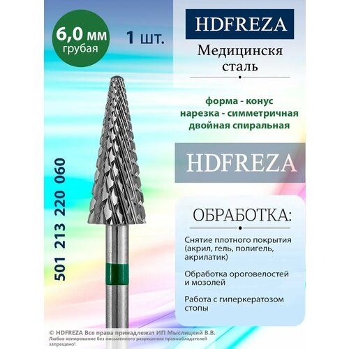 НАЙТИ ВЫГОДНЕЕ - Фреза для маникюра и педикюра HDFREZA твердосплавная для снятия покрытия 501 213 220 060 Грубая зеленая конус