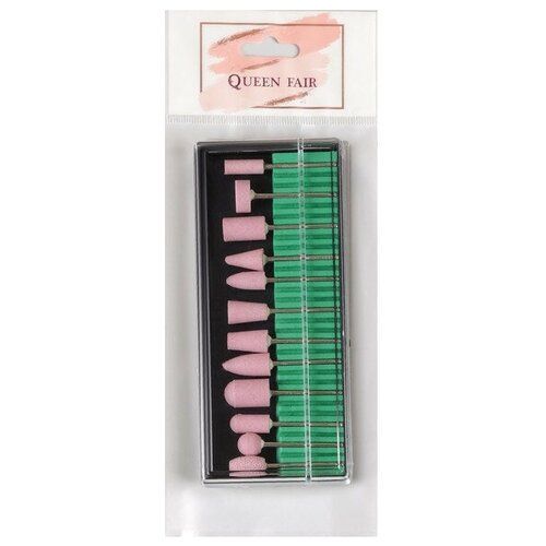 НАЙТИ ВЫГОДНЕЕ - Набор фрез для маникюра и педикюра Queen Fair корундовые (3004413) 12 шт. 7 мм тонкая розовый/серебристый