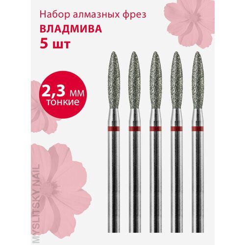 НАЙТИ ВЫГОДНЕЕ - Фреза для маникюра и педикюра алмазная ВладМиВа для кутикулы 806 104 244 514 023 Тонкая пламя (упаковка 5 шт)