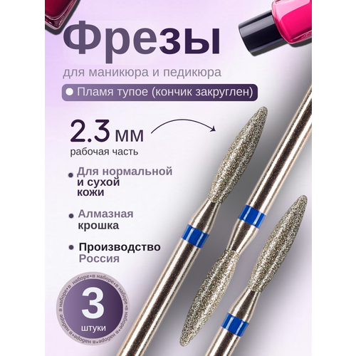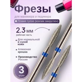 НАЙТИ ВЫГОДНЕЕ - Фрезы для маникюра Пламя закругленное Astial алмазные синие, для кутикулы и ногтей, 3 шт