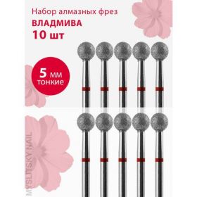 НАЙТИ ВЫГОДНЕЕ - Фреза для маникюра и педикюра алмазная ВладМиВа для кутикулы 806 104 001 514 050 Тонкая шар (упаковка 10 шт)