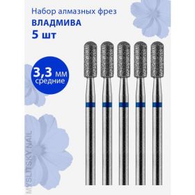 НАЙТИ ВЫГОДНЕЕ - Фреза для маникюра и педикюра алмазная ВладМиВа для кутикулы 806 104 141 524 033 Средняя цилиндр (упаковка 5 шт)