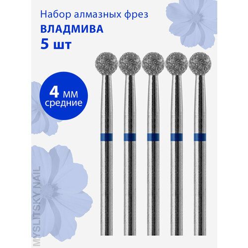 НАЙТИ ВЫГОДНЕЕ - Фреза для маникюра и педикюра алмазная ВладМиВа для кутикулы 806 104 001 524 040 Средняя шар (упаковка 5 шт)