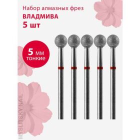 НАЙТИ ВЫГОДНЕЕ - Фреза для маникюра и педикюра алмазная ВладМиВа для кутикулы 806 104 001 514 050 Тонкая шар (упаковка 5 шт)