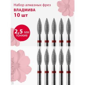 НАЙТИ ВЫГОДНЕЕ - Владмива Фреза для маникюра и педикюра алмазная 806 104 243 514 025 Тонкая красная пламя (10 шт)