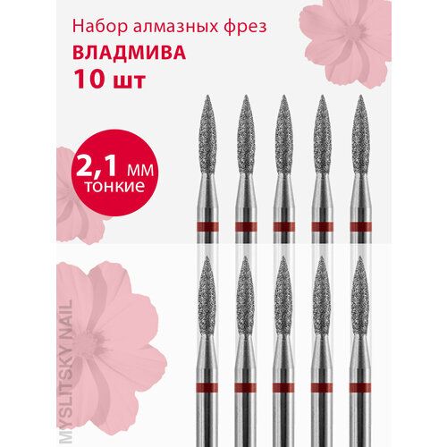 НАЙТИ ВЫГОДНЕЕ - Владмива Фреза для маникюра и педикюра алмазная 806 104 243 514 021 Тонкая красная пламя (10 шт)