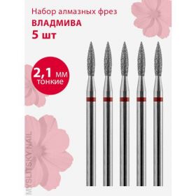 НАЙТИ ВЫГОДНЕЕ - Владмива Фреза для маникюра и педикюра алмазная 806 104 243 514 021 Тонкая красная пламя (5 шт)