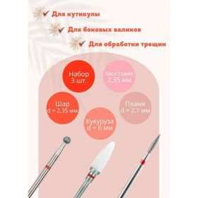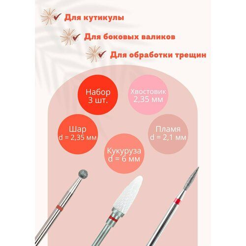 НАЙТИ ВЫГОДНЕЕ - Фрезы для маникюрного аппарата, 3 шт. Керамическая, алмазная/ Форма Кукуруза, Пламя, Шар