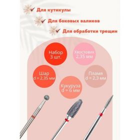 Набор фрез для аппаратного маникюра включает в себя три фрезы разных размеров и форм: