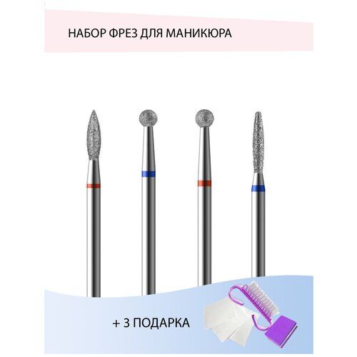 НАЙТИ ВЫГОДНЕЕ - Набор алмазных фрез для маникюра Myslitsky-Nail пламя и шары, 4 фрезы