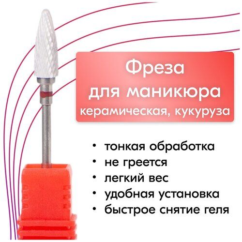 НАЙТИ ВЫГОДНЕЕ - NailsProfi, Фреза кукуруза, пламя керамическая для аппаратного маникюра и педикюра, красная, тонкая обработка