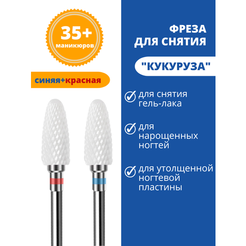 НАЙТИ ВЫГОДНЕЕ - Фреза керамическая Astial Кукуруза для снятия гель лака, 2 штуки, с красной и синей насечкой