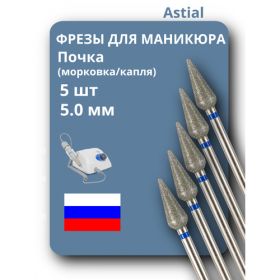 НАЙТИ ВЫГОДНЕЕ - Фреза Морковка для ногтей Astial, алмазная, синяя, средняя, 5 штук, 806.104.266.524.050