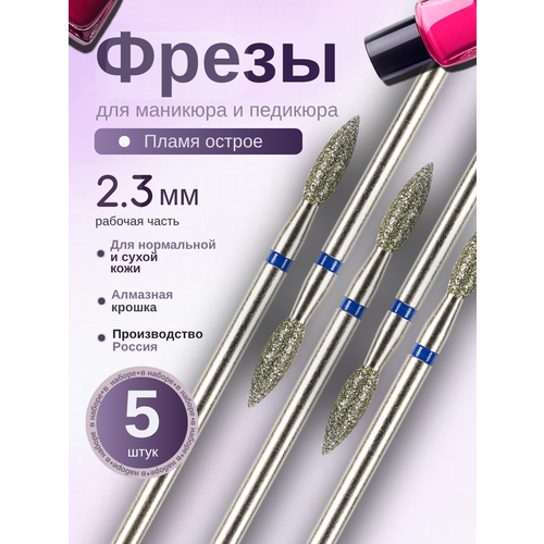НАЙТИ ВЫГОДНЕЕ - Фрезы для маникюра Astial Пламя алмазная, синяя, средняя, 5 штук