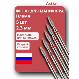 НАЙТИ ВЫГОДНЕЕ - Фреза Пламя Astial для маникюра/педикюра, алмазная, красная, тонкая, 5 штук