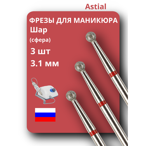НАЙТИ ВЫГОДНЕЕ - Фреза для ногтей Astial, алмазная, шар, 3 штуки