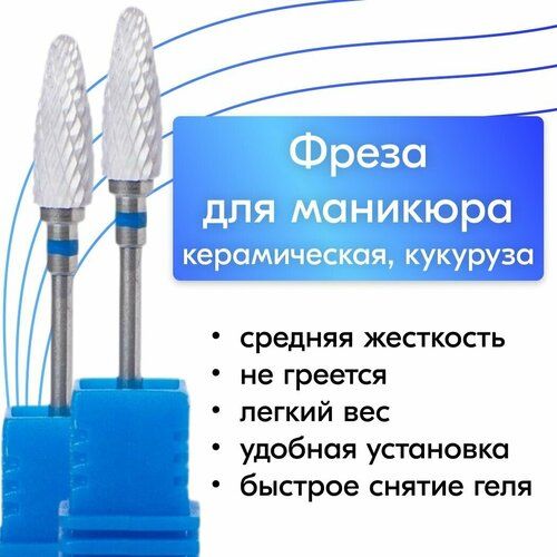 НАЙТИ ВЫГОДНЕЕ - NailsProfi, Фреза кукуруза керамическая для аппаратного маникюра и педикюра, насадка пламя, синяя, средняя жесткость - 2 шт