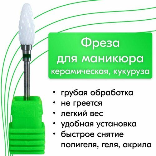 НАЙТИ ВЫГОДНЕЕ - NailsProfi, Фреза зеленая кукуруза керамическая для аппаратного маникюра и педикюра, жесткая обработка