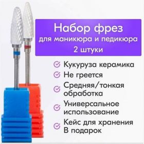 НАЙТИ ВЫГОДНЕЕ - NailsProfi, Набор керамических фрез для маникюра и педикюра, кукуруза, красная и синяя насечка, 2 шт