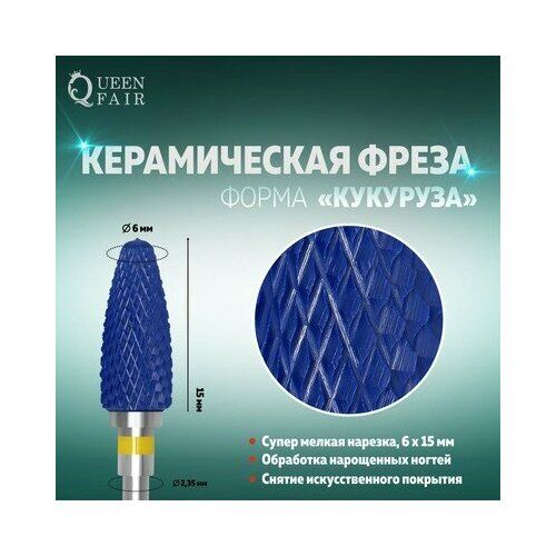 НАЙТИ ВЫГОДНЕЕ - Фреза керамическая для маникюра «Кукуруза», супер мелкая нарезка, 6 × 15 мм, цвет синий