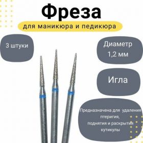НАЙТИ ВЫГОДНЕЕ - Фреза алмазная для маникюра Игла, средняя зернистость, синяя насечка, 1,2 х 10 мм,3 штуки