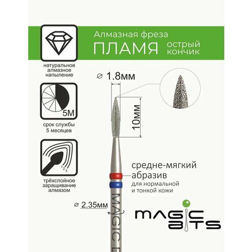 НАЙТИ ВЫГОДНЕЕ - Magic Bits Фреза Алмазное пламя 1.8 мм острый кончик с натуральным напылением средне-мягкого абразива