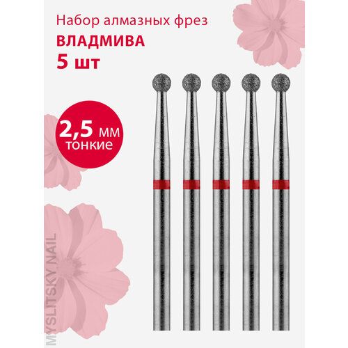 НАЙТИ ВЫГОДНЕЕ - Фреза для маникюра и педикюра алмазная ВладМиВа для кутикулы 806 104 001 514 025 Тонкая шар (упаковка 5 шт)
