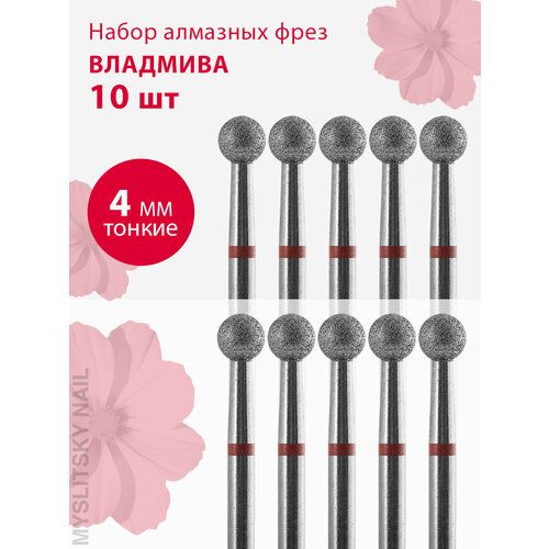 НАЙТИ ВЫГОДНЕЕ - Фреза для маникюра и педикюра алмазная ВладМиВа для кутикулы 806 104 001 514 040 Тонкая шар (упаковка 10 шт)
