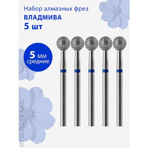 НАЙТИ ВЫГОДНЕЕ - Фреза для маникюра и педикюра алмазная ВладМиВа для кутикулы 806 104 001 524 050 Средняя шар (упаковка 5 шт)