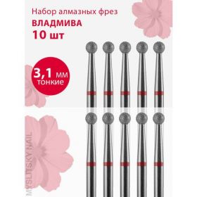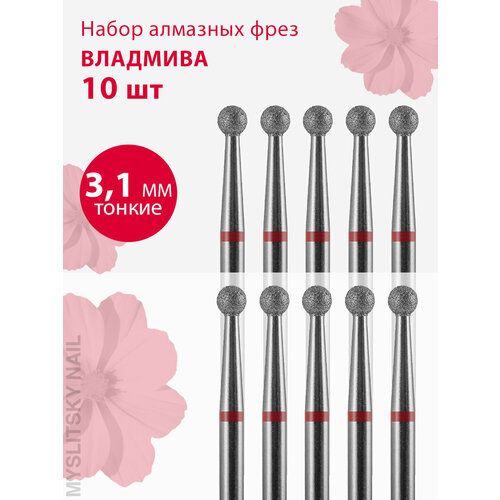 НАЙТИ ВЫГОДНЕЕ - Фреза для маникюра и педикюра алмазная ВладМиВа для кутикулы 806 104 001 514 031 Тонкая шар (упаковка 10 шт)