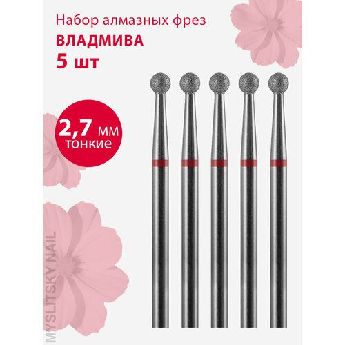 НАЙТИ ВЫГОДНЕЕ - Фреза для маникюра и педикюра алмазная ВладМиВа для кутикулы 806 104 001 514 027 Тонкая шар (упаковка 5 шт)
