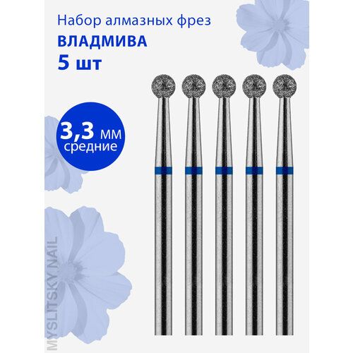 НАЙТИ ВЫГОДНЕЕ - Фреза для маникюра и педикюра алмазная ВладМиВа для кутикулы 806 104 001 524 033 Средняя шар (упаковка 5 шт)