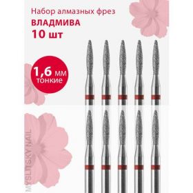 НАЙТИ ВЫГОДНЕЕ - Владмива Фреза для маникюра и педикюра алмазная 806 104 243 514 016 Тонкая красная пламя (10 шт)