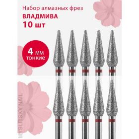 НАЙТИ ВЫГОДНЕЕ - Фреза для маникюра и педикюра алмазная ВладМиВа 806 104 266 514 040 Тонкая конус (упаковка 10 шт)