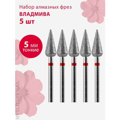 НАЙТИ ВЫГОДНЕЕ - Фреза для маникюра и педикюра алмазная ВладМиВа 806 104 266 514 050 Тонкая конус (упаковка 5 шт)