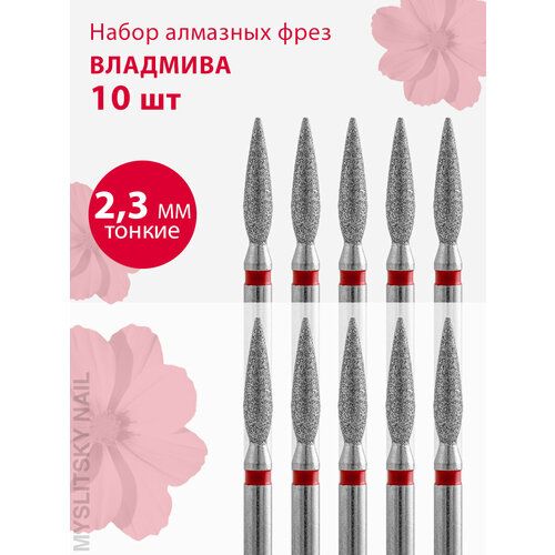 НАЙТИ ВЫГОДНЕЕ - Владмива Фреза для маникюра и педикюра алмазная 806 104 244 514 023 Тонкая красная пламя (10 шт)