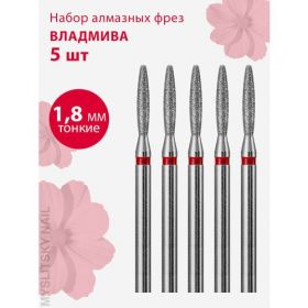 НАЙТИ ВЫГОДНЕЕ - Владмива Фреза для маникюра и педикюра алмазная 806 104 244 514 018 Тонкая красная пламя (5 шт)
