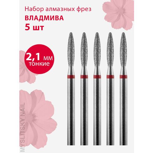 НАЙТИ ВЫГОДНЕЕ - Владмива Фреза для маникюра и педикюра алмазная 806 104 244 514 021 Тонкая красная пламя (5 шт)