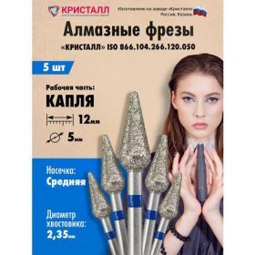 НАЙТИ ВЫГОДНЕЕ - Кристалл, Алмазная фреза (капля), D5,0, L120, средняя, 866.104.266.120.050, 5 шт