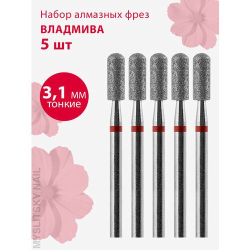 НАЙТИ ВЫГОДНЕЕ - Фреза для маникюра и педикюра алмазная ВладМиВа для кутикулы 806 104 141 514 031 Тонкая цилиндр (упаковка 5 шт)