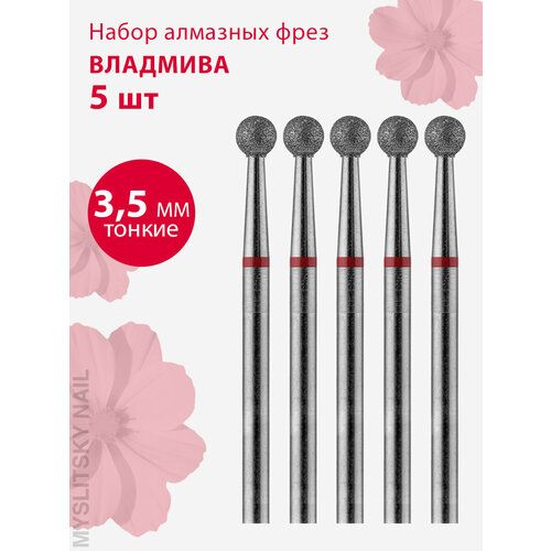 НАЙТИ ВЫГОДНЕЕ - Фреза для маникюра и педикюра алмазная ВладМиВа для кутикулы 806 104 001 514 035 Тонкая шар (упаковка 5 шт)