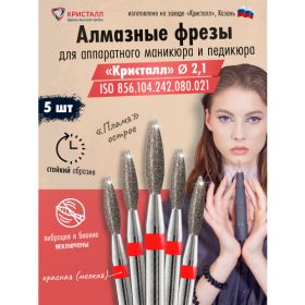 НАЙТИ ВЫГОДНЕЕ - Кристалл, Алмазная фреза (пламя острое, каплевидное) D2,1, L080, мягкая, 856.104.242.080.021, 5 шт