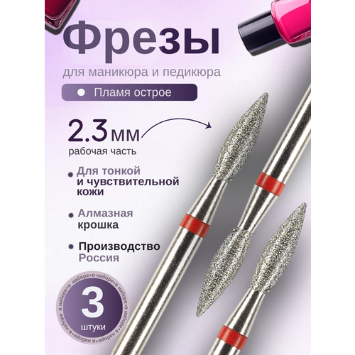НАЙТИ ВЫГОДНЕЕ - Фреза Пламя Astial для маникюра/педикюра, алмазная, красная, тонкая, 3 шт
