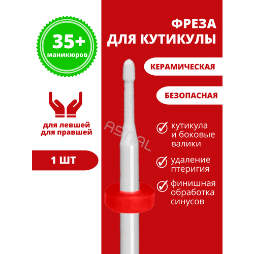 НАЙТИ ВЫГОДНЕЕ - Керамическая безопасная фреза для кутикулы Astial, диаметр 1,6 мм, красная насечка, бор 217940