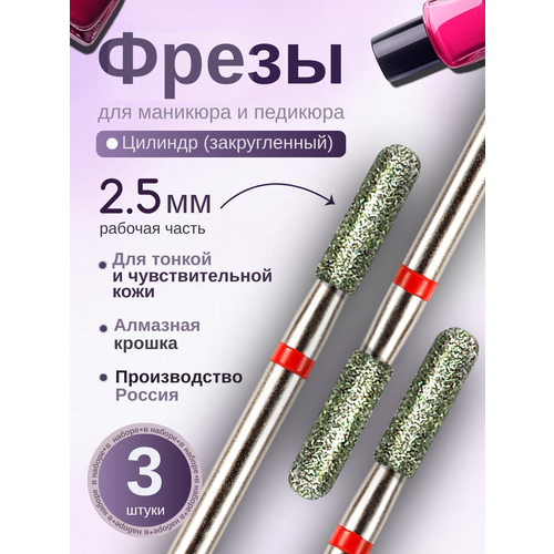 НАЙТИ ВЫГОДНЕЕ - Фрезы Цилиндр Astial для маникюра и педикюра, диаметр 2,5мм, 3 штуки в упаковке, 806.104.141.514.025